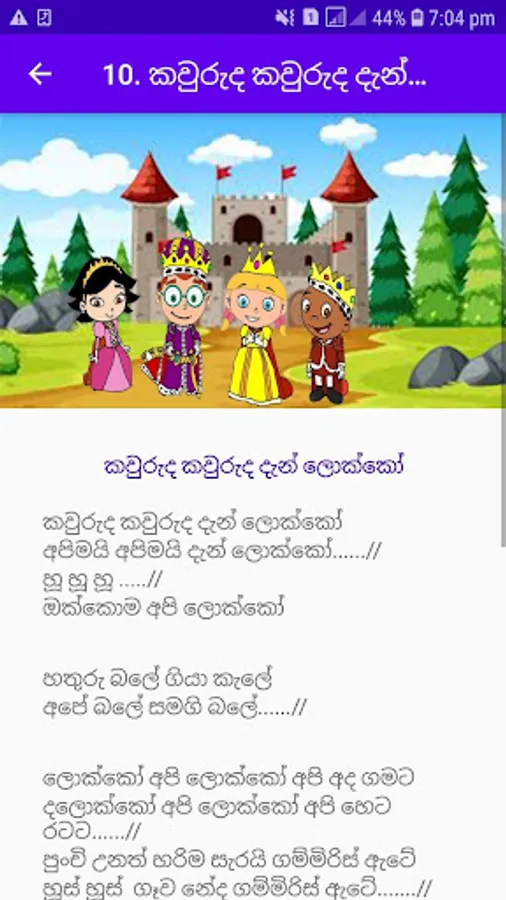 පුංචි ළමුන් සඳහා සුදුසු ළමා ගීත එකතුවක් දැන් ඔබට මෙම app එක මගින් නොමිලේ ලබාගත හැක. කුඩා දරුවන් සිටින දෙමව්පියන්ටත්, පාසල් ගුරුවරුන්ටත් මෙය වඩාත් ප්රයෝජනවත් වේවි.