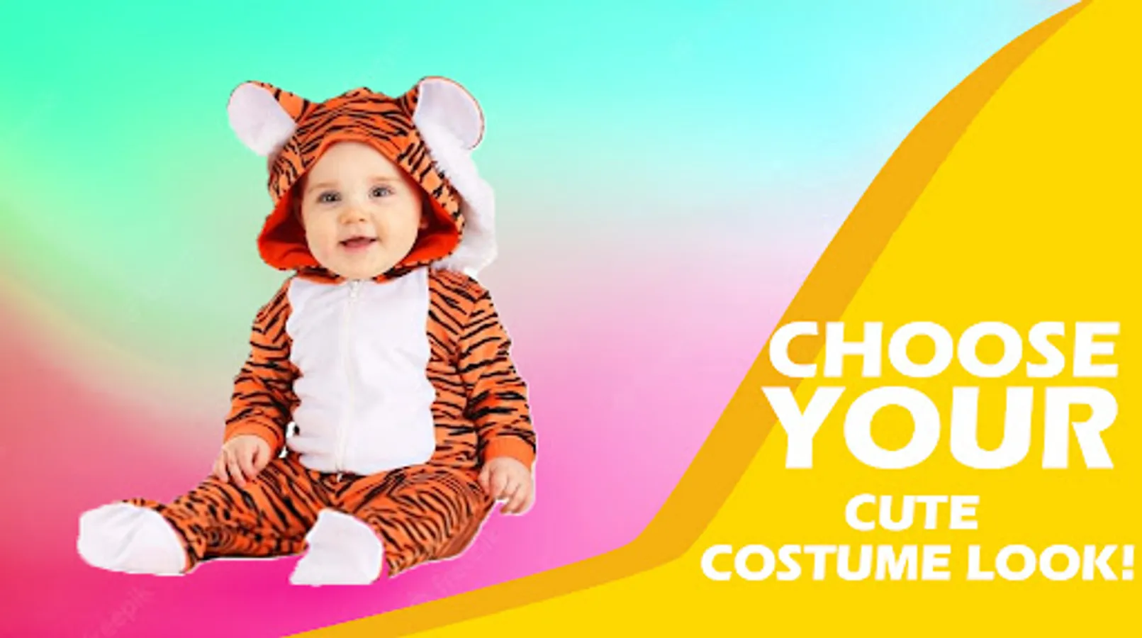 Easy to use, just select your favorite baby custome photo and insert your best photo, then share to your friends or family.
