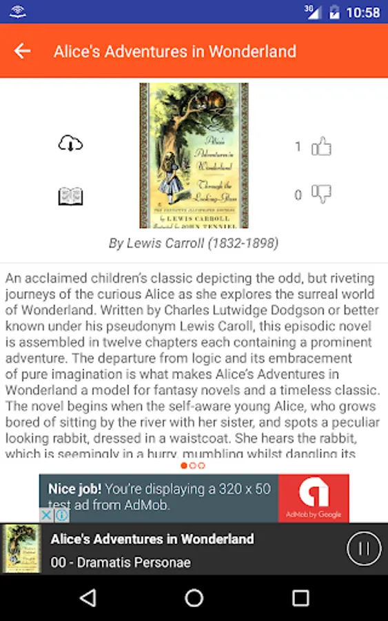 Each audio book can be streamed over the internet or downloaded for later use without any charge. Free Classic Audiobooks makes it easy to find the book you want. You can see the most popular books or search by keyword with title, author and genre. This app allows you to stop playback with a sleep timer and bookmarks the book you has been listened in recent book list. You can save and listen to as many books as you like by download.