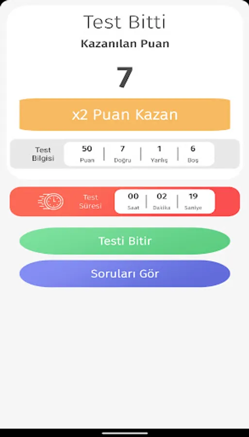 💥 You can make your score x2 by watching rewarded ads after the test.