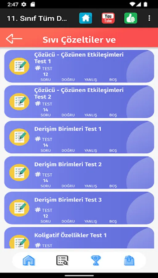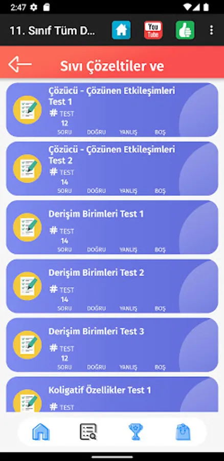 💥 In the tests you solve in the categories, your last correct and incorrect numbers are shown.