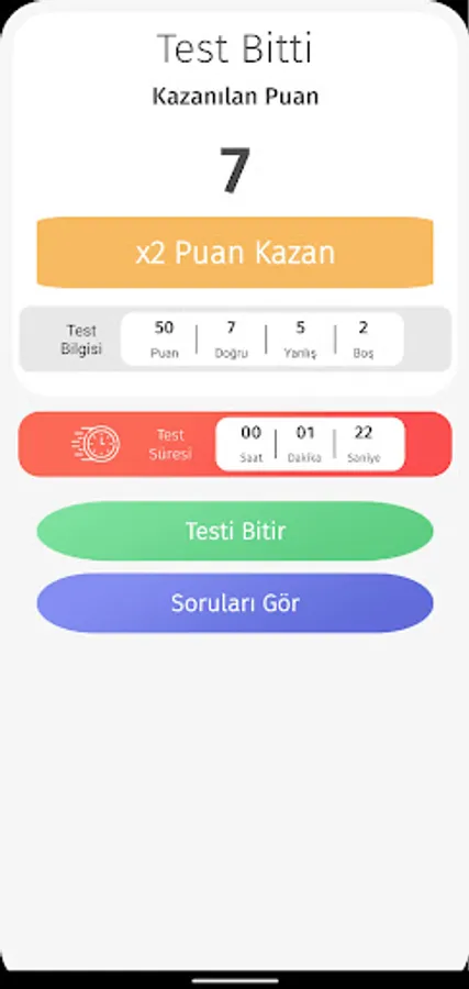 💥 You can make your score x2 by watching rewarded ads after the test.