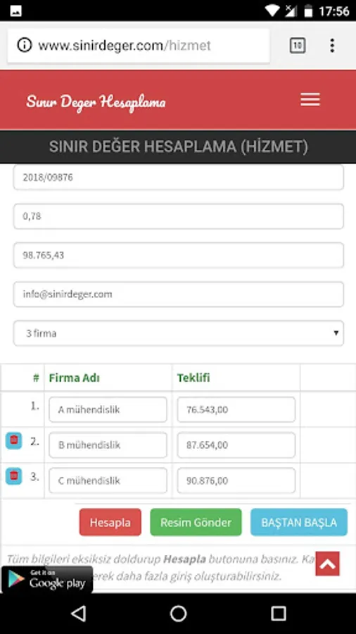 Also; you can add the picture of the tender result you want to calculate. we can calculate and send you an e-mail.