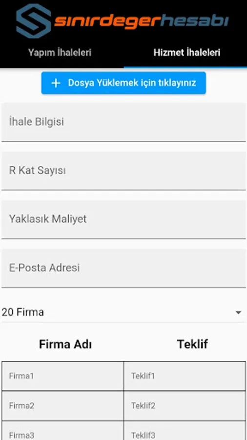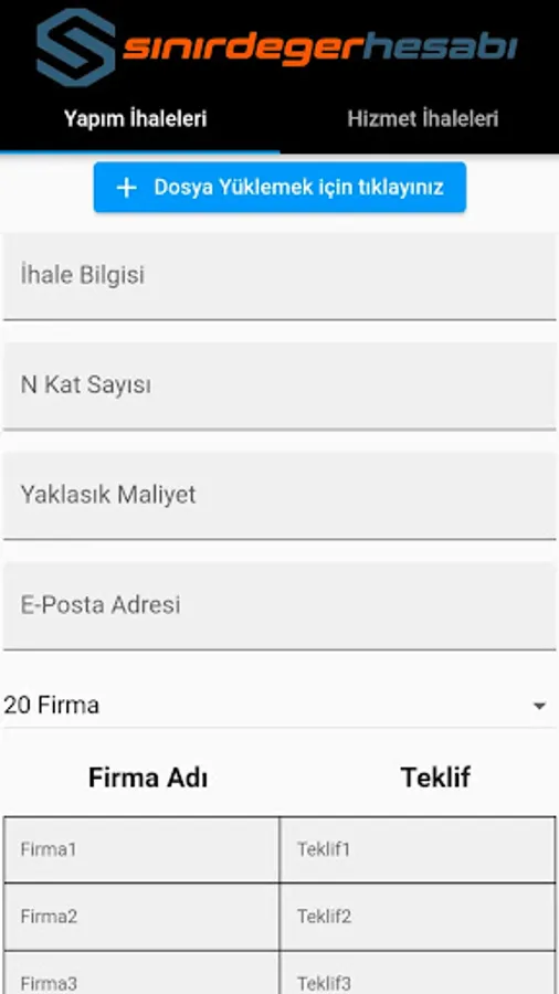 The limit value calculation application is an application that works by taking into account the bids and the approximate cost value of the participants entering the public tenders. Boundary value calculation application works in two ways. The 1st method is based on producing results by manually entering the bid and company names. The second method is based on producing results by systematically calculating the tender participation report.