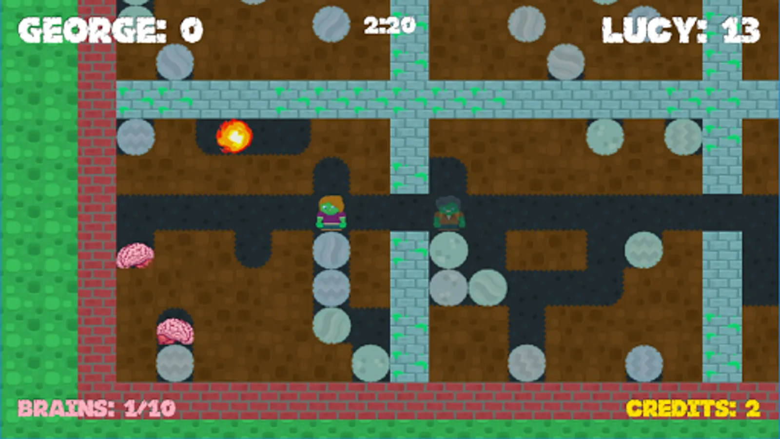 Zombie Rocks! is a non-stop, 60hz, retro-inspired, multi-player arcade game. for one or two players Battle your way through obstacles and puzzles to find your way through multiple increasingly difficult levels.