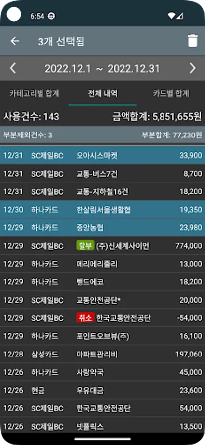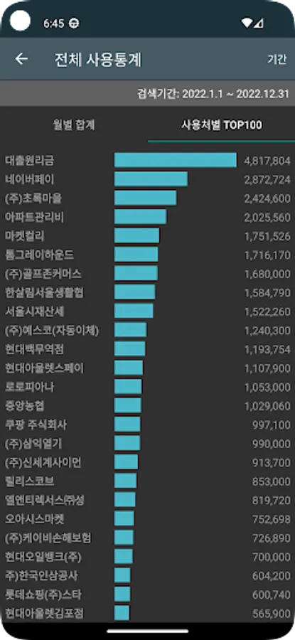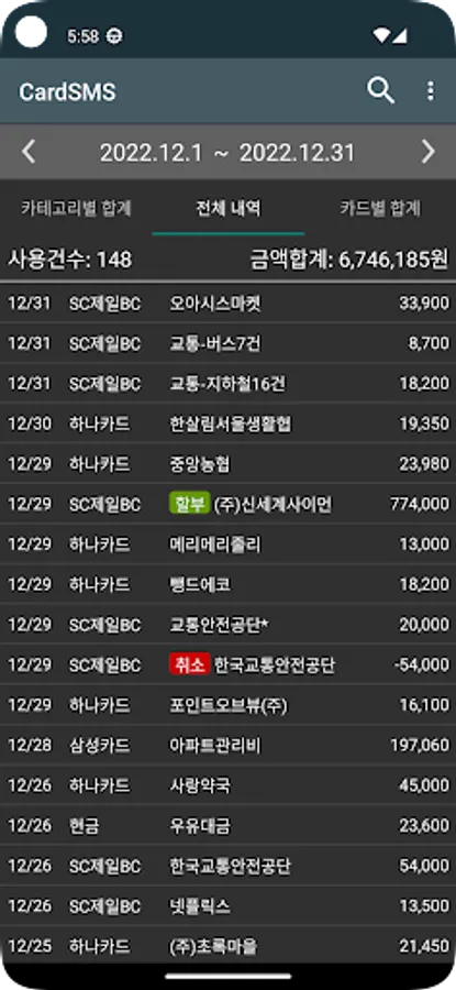 ▶ CardSMS is not a household account book app, so it does not recognize bank deposits and withdrawals. The debit card's authorization history recognizes only those received via a separate card authorization SMS just like a regular credit card.