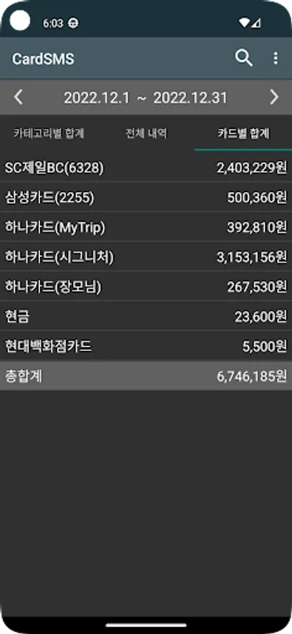 CardSMS is an app that automatically recognizes and stores SMS approval history texts of credit/debit cards, and allows you to conveniently search the usage history at any time. Card usage history can be checked at a glance, helping you live a modest card life.