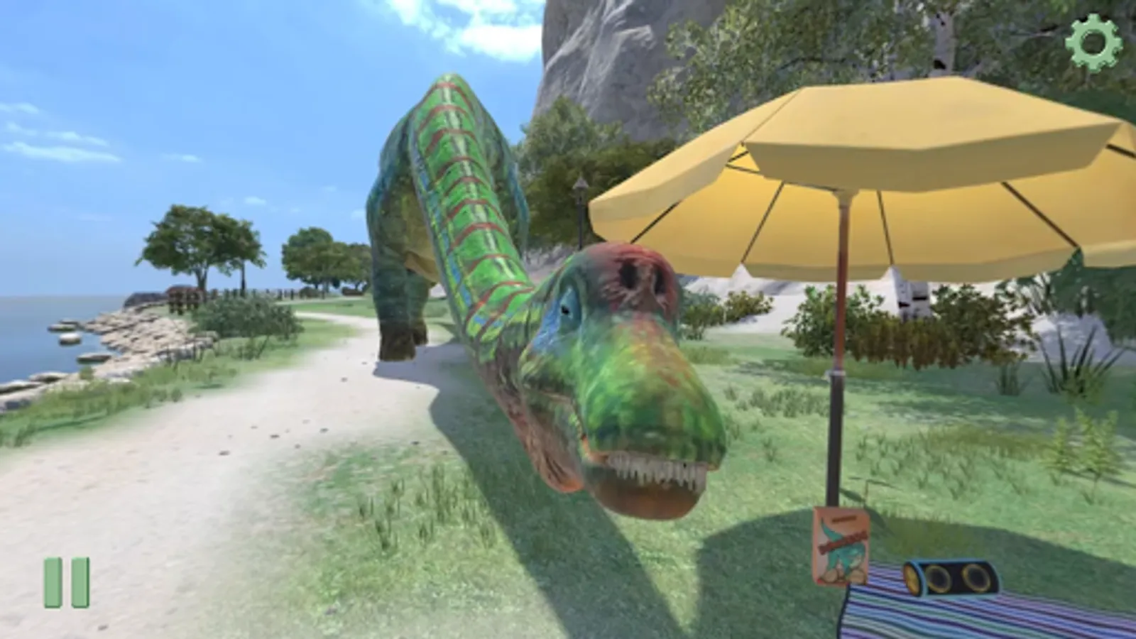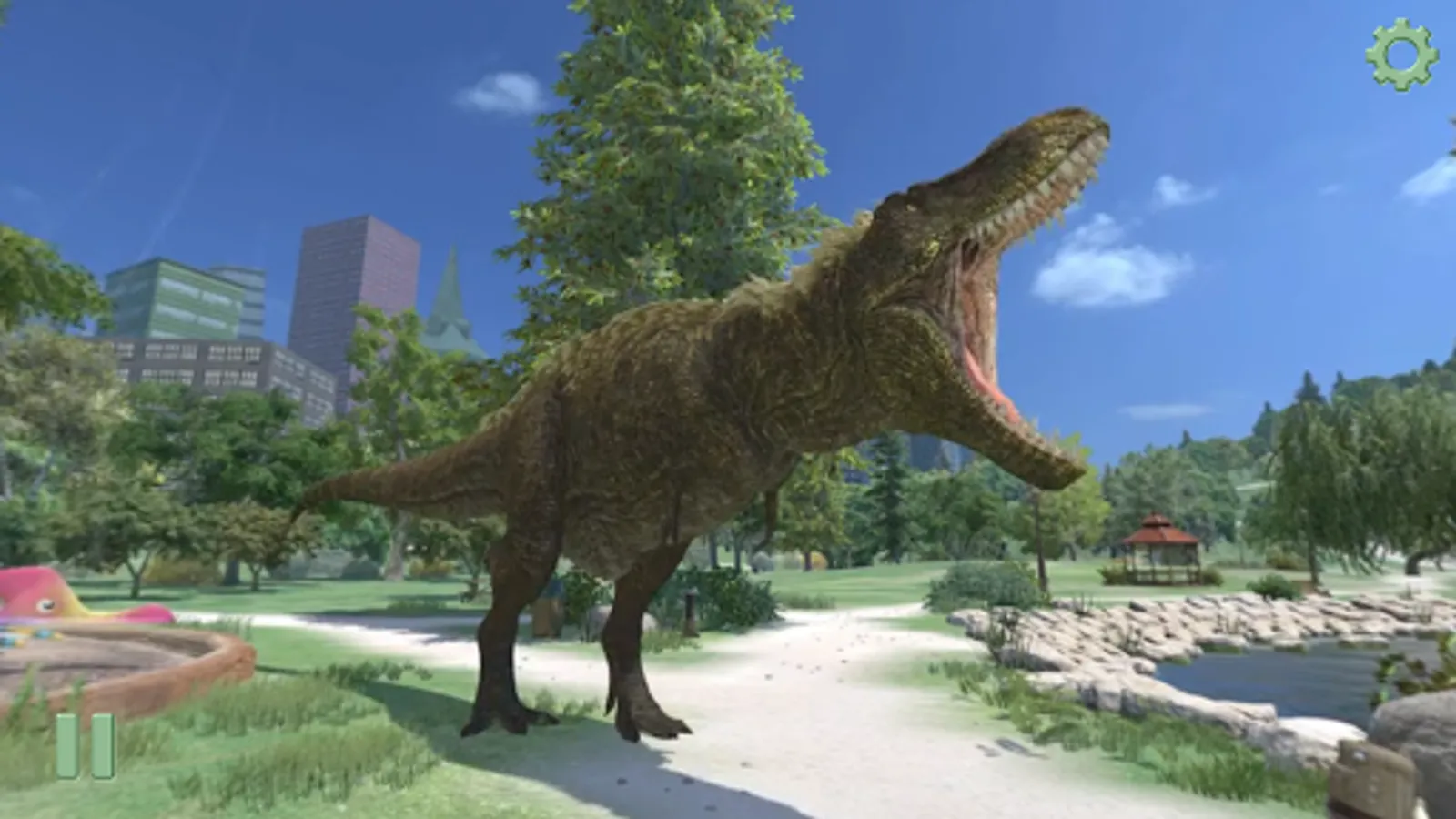 Dino Dana: Dino Vision is a fun touch-screen experience for phone or tablet. It also has a cool VR option for Google Cardboard or other VR headsets that hold the player's phone. Dino Dana herself leads you through three amazing dino experiments with stomping, snorting, 3D dinosaurs. You'll meet: a pair of head-butting Stygimoloch; a rumbling herd of Triceratops; hungry Spinosaurus; a baby T-rex; a mama T-rex; little Nanotyrannus; gliding pterosaur Quetzalcoatlus; and towering Futalognkosaurus, as tall as a three-storey building. Now you can see dinosaurs just like Dino Dana does, gasping at the big ones and ooh-ing and aah-ing at the cute little ones. Along the way you'll discover how baby dinos learned to hunt, how big dinosaurs kept cool in the hot sun, and you'll see just how big prehistoric shark Megalodon was. Paleontologists-in-training, buckle up for adventure!