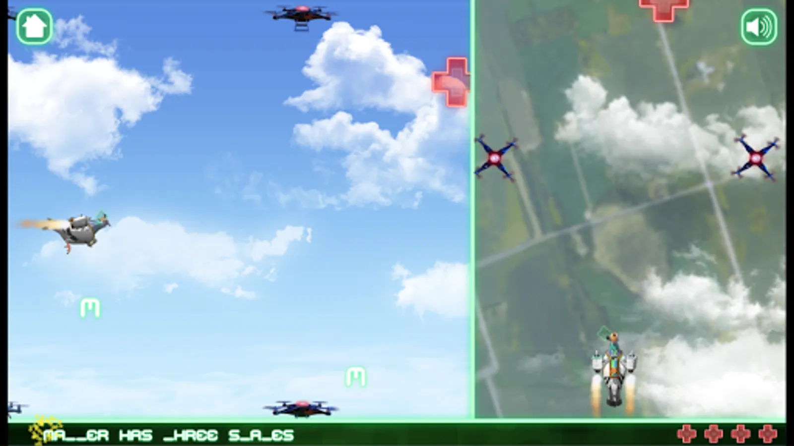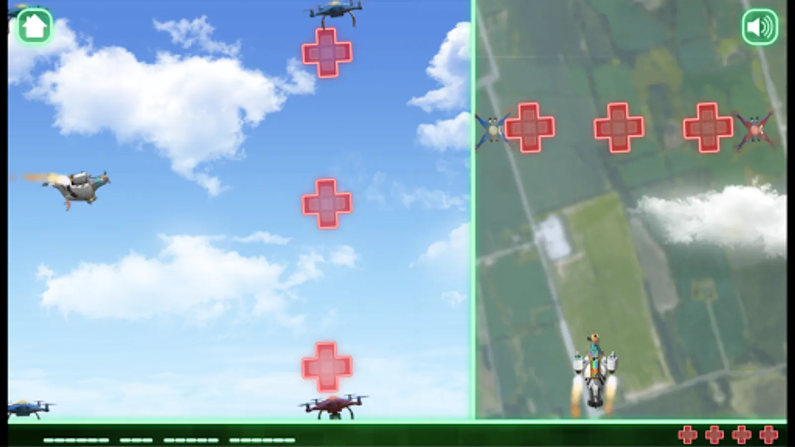 The hit kids TV show Annedroids brings you this 2-screen finger-twitch challenge. Pidgely is a cybernetic pigeon with a rocket suit, but he needs your help to navigate through the sky, avoiding drones, and finding power-ups. The trick is that you see Pidgely on 2 screens: one is a side view and the other is a top-down view. Paying attention to both screens is the only way to make sure Pidgely gets across town safe and sound. Along the way, Pidgely also has to collect floating message modules that spell out a secret message!