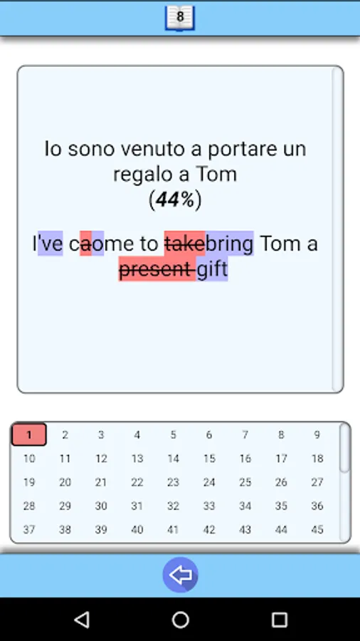 Improve your foreign language by using it. Learn the language in context. With this app you can learn the construction of sentences. By translating the sentences you will learn from your mistakes. The solutions are translated by people, ensuring a good quality and naturalness of the language. There are many ways to say something, but some ways of organizing the sentence are more natural than others. By translating you will not only learn to speak and write the language but also vocabulary in context.