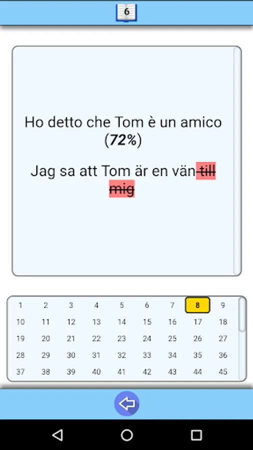 Improve your foreign language by using it. Learn the language in context. With this app you can learn the construction of sentences. By translating the sentences you will learn from your mistakes. The solutions are translated by people, ensuring a good quality and naturalness of the language. There are many ways to say something, but some ways of organizing the sentence are more natural than others. By translating you will not only learn to speak and write the language but also vocabulary in context.
