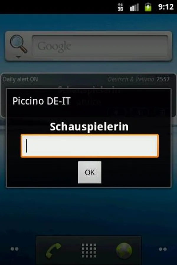 Piccino works like "the word of the day". Every 24 hours it gives you a new word. You can remove words by tapping the "delete icon", and giving the right answer. It can pronounce words. You can obtain a new word by tapping the widget.