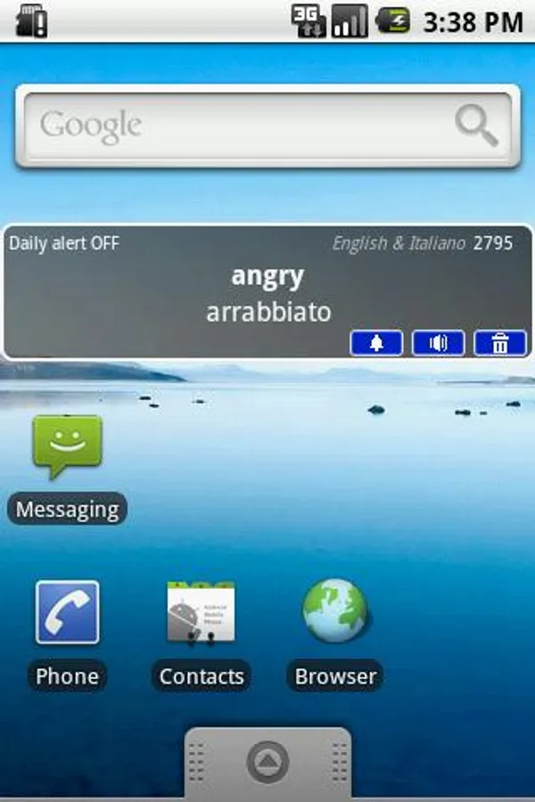 Piccino works like "the word of the day". Every 24 hours it gives you a new word. You can remove words by tapping the "delete icon", and giving the right answer. It can pronounce words. You can obtain a new word by tapping the widget.