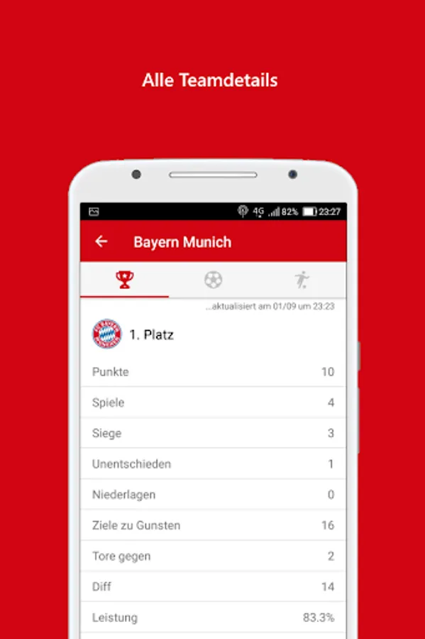 1 - To view the details of the team in the German soccer championship, simply "tap" on the team name.