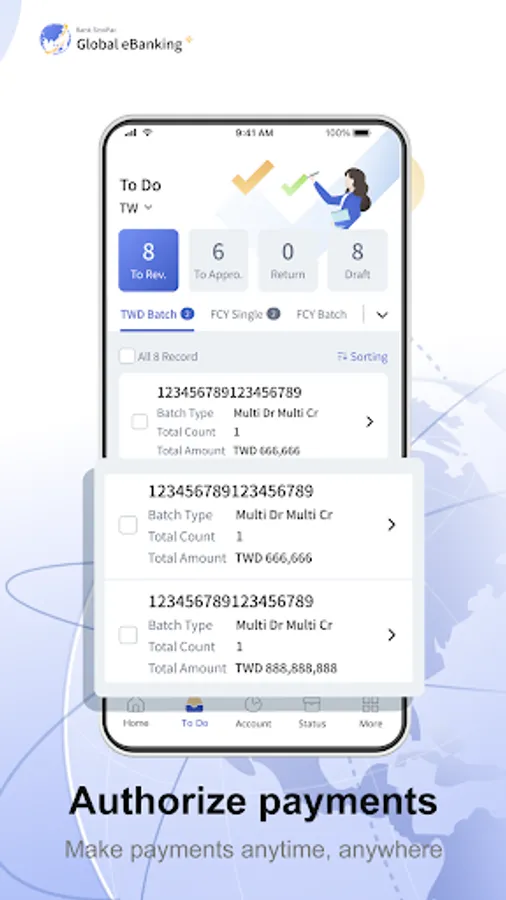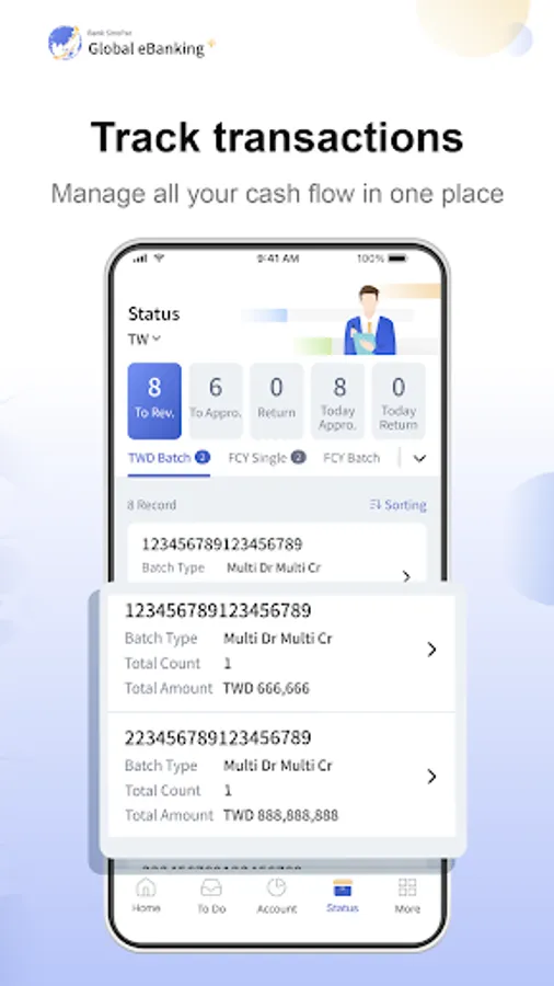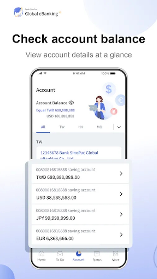Group company account is integrated for you to inquire anytime and exchange rate is provided for you to refer to flexibly.