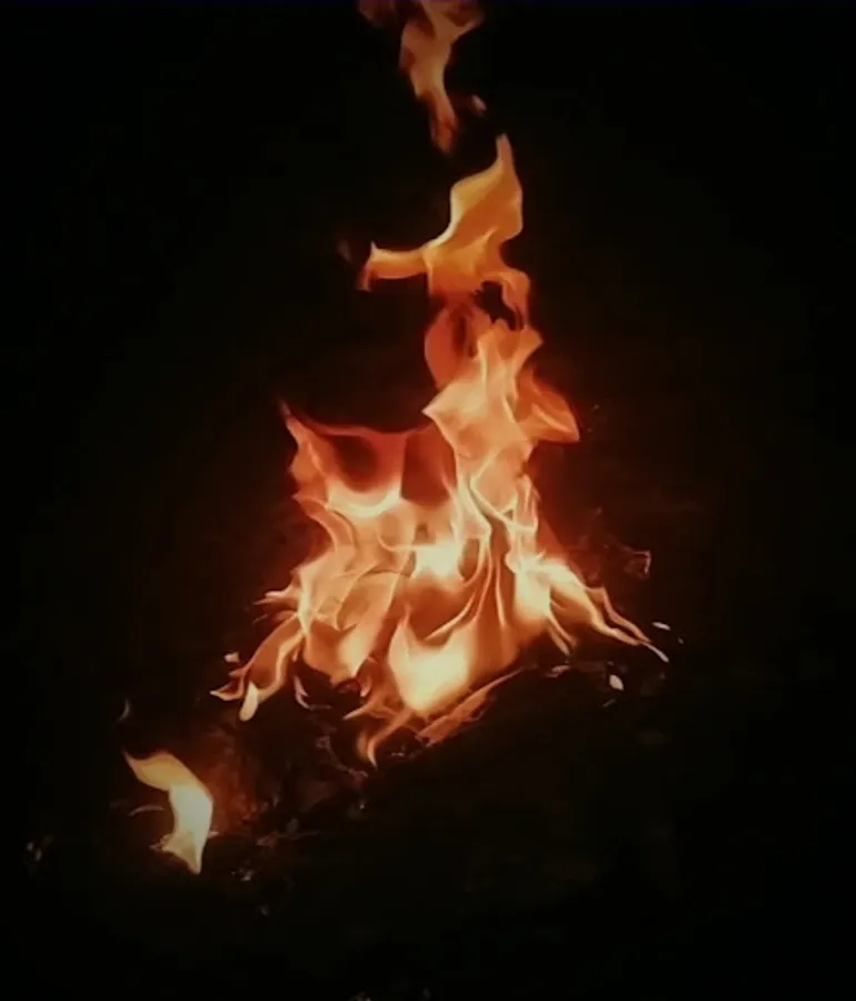Looking at the bonfire and reminiscing about the past
