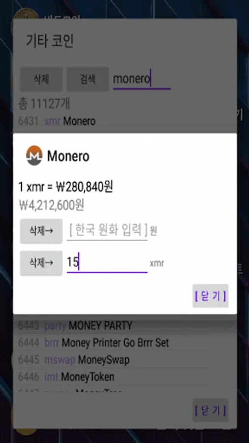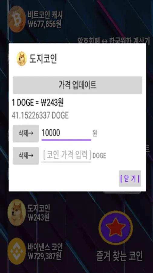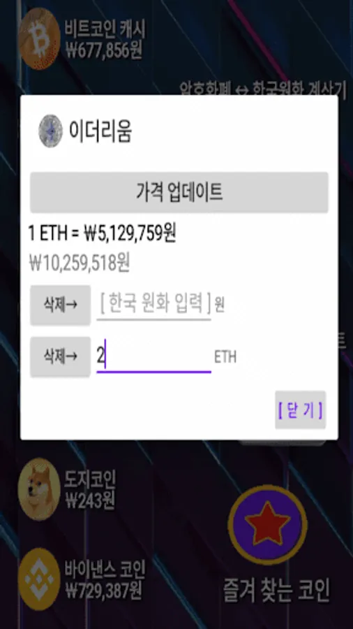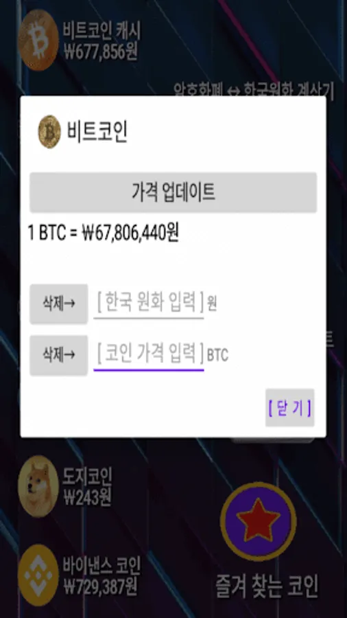 This is a simple app that converts the amount of Korean won into cryptocurrency and displays it when you enter the amount.
