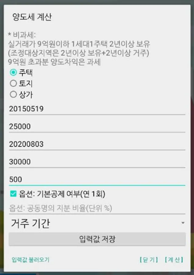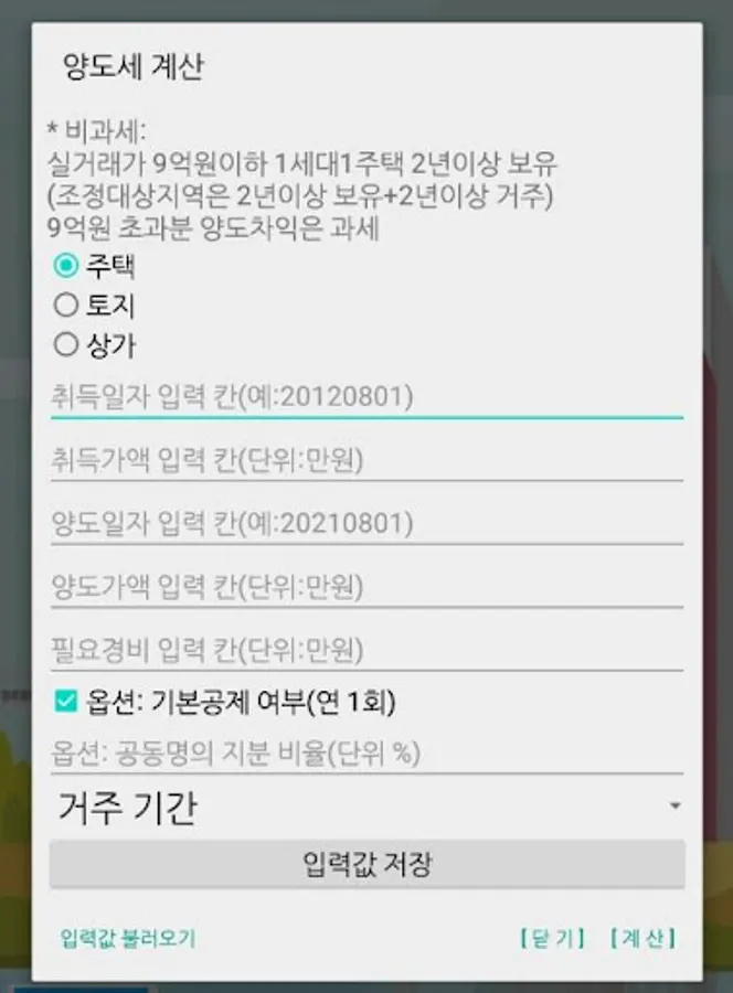 1. Calculation of capital gains tax after entering conditions