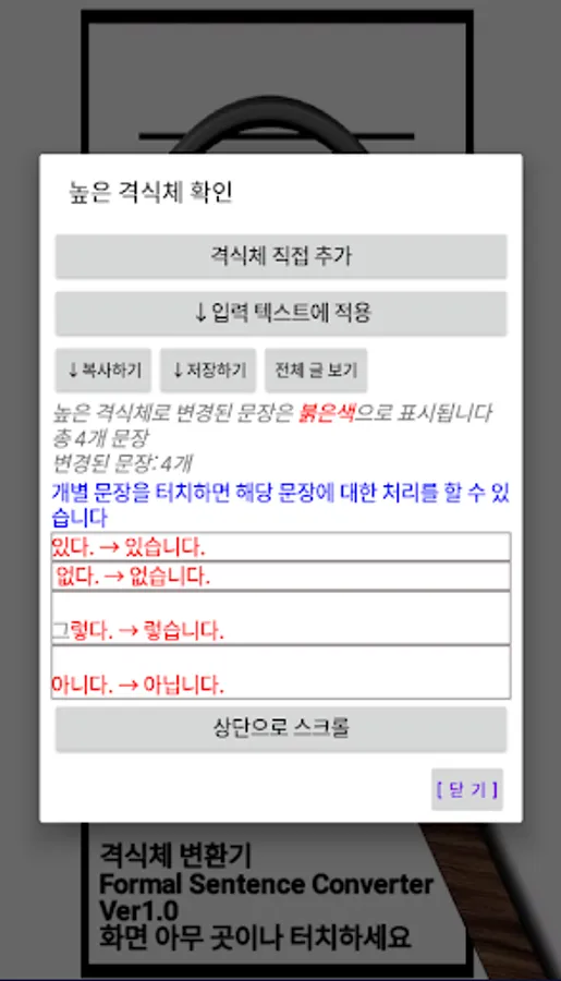It cannot handle all possible expressions in Hangul, and only expressions registered in the app are detected and changed to highly formal expressions.