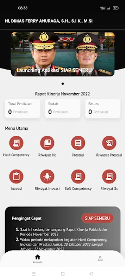 This application was introduced by the East Java Regional Police as a medium for personnel career development through the achievement of data-based performance indicators.