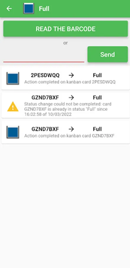 • Scan cards barcodes to change the kanban status and release new production orders to internal departments or new purchase orders to external suppliers
