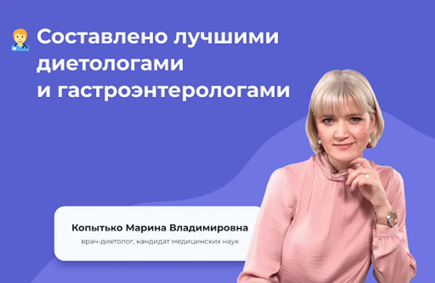 A well-known nutritionist, author of many publications and broadcasts on the main TV channels, author of several books, candidate of medical sciences Marina Vladimirovna Kopytko helped us in the development.