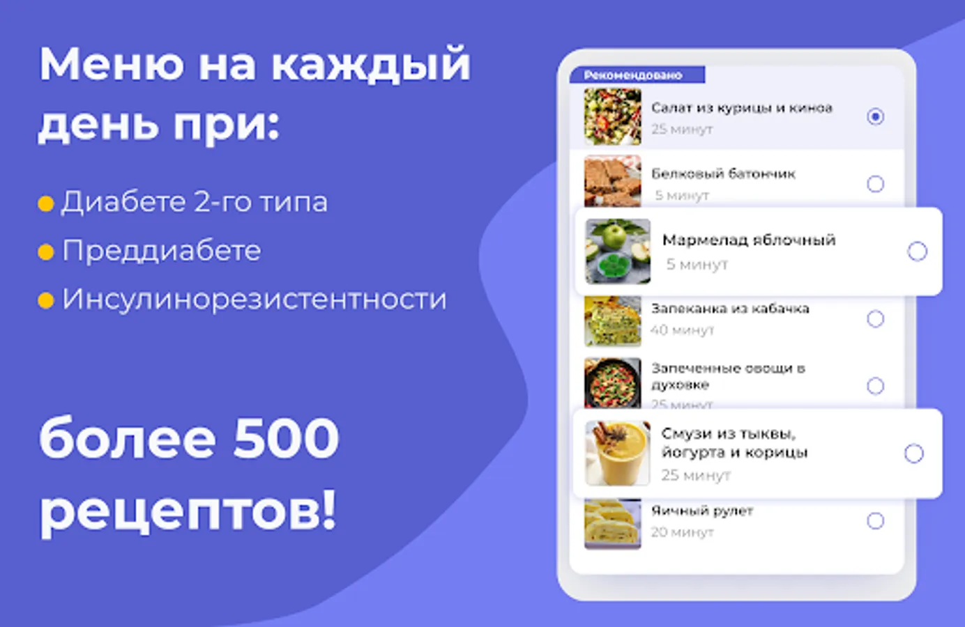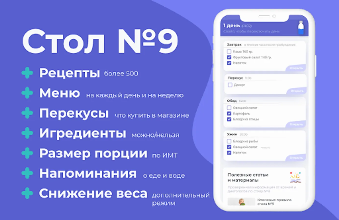 Table 9 and the diet for diabetes include a limited list of foods allowed for consumption, which complicates the choice of meals. The application solves this problem: it contains only modern recipes, many of which are very easy to prepare. Also in the application there is a list of "quick" foods that you can eat immediately, or quickly reheat in a double boiler.