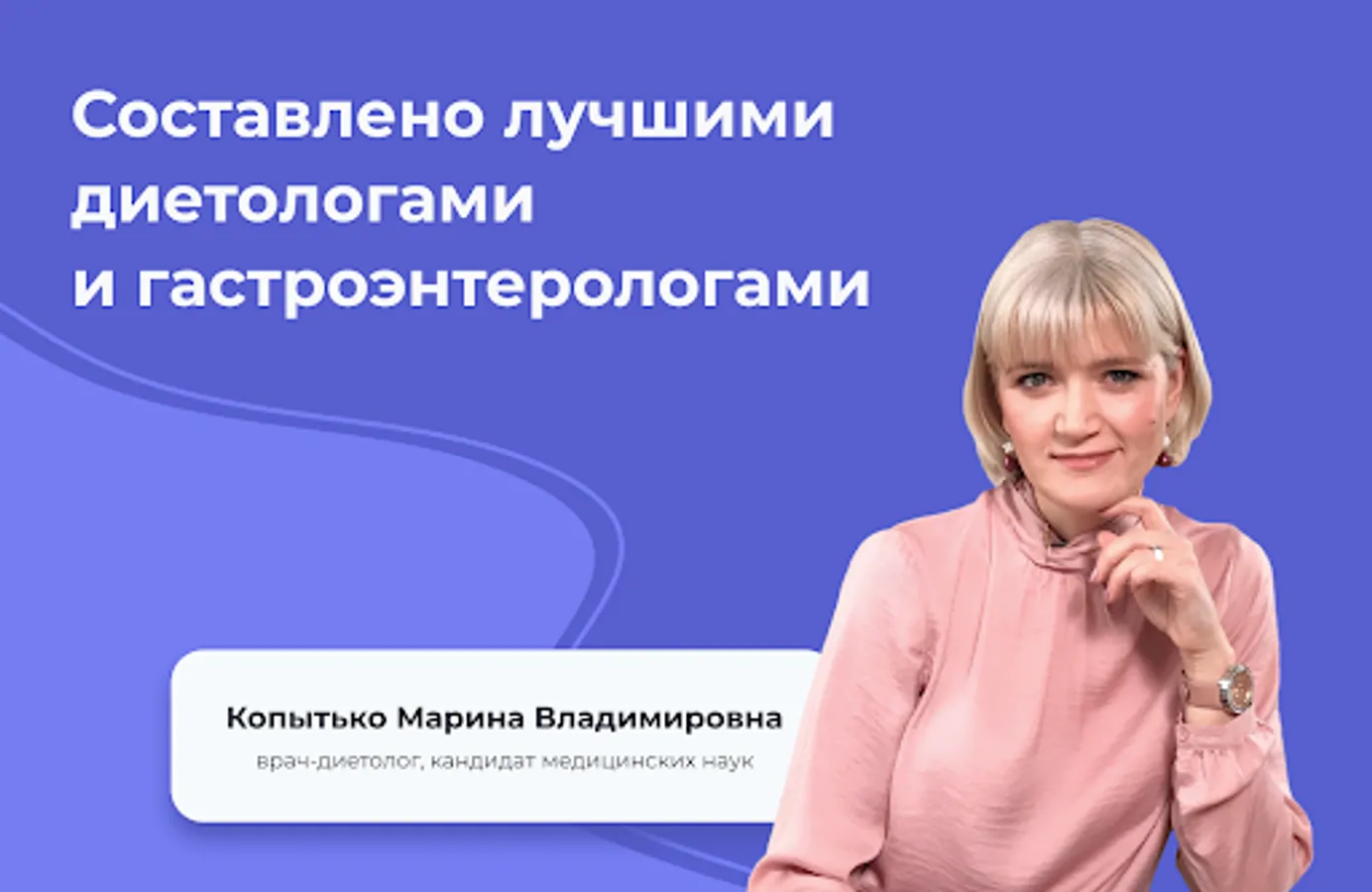 A well-known nutritionist, author of many publications and broadcasts on the main TV channels, author of several books, candidate of medical sciences Marina Vladimirovna Kopytko helped us in the development.