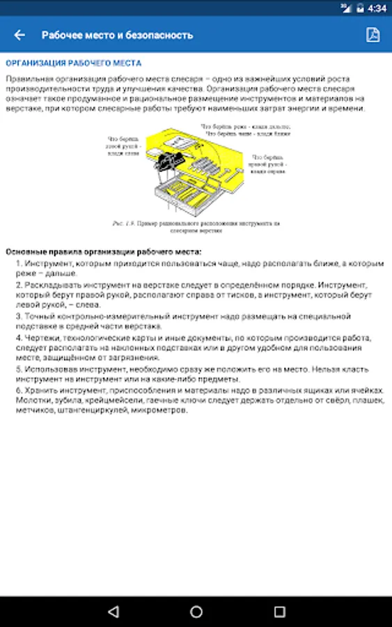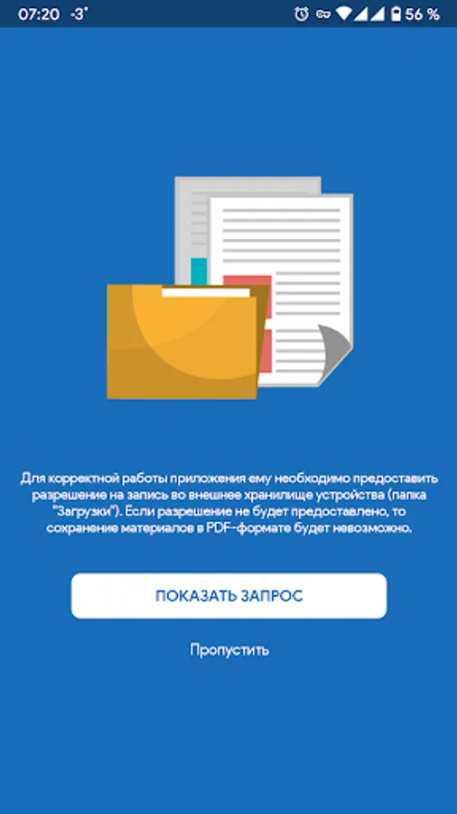 All materials presented in the application, can be stored on the device in the PDF-document format in the folder Downloads (Downloads). For this application you need to share files and folders with the device.