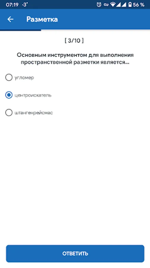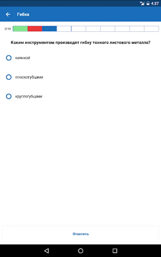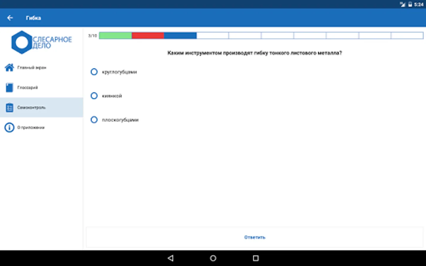 All material is divided into 16 chapters. Each chapter is made for self-test of 10 questions.