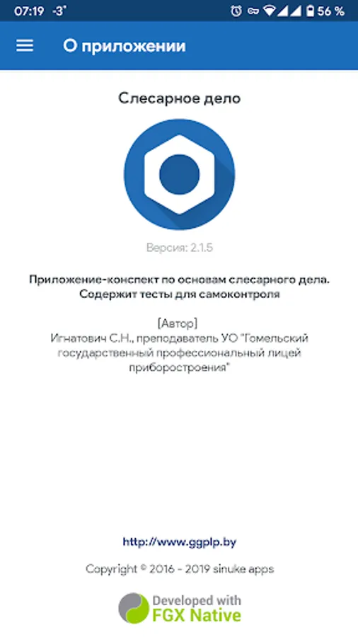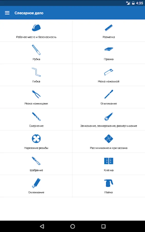The app is an electronic synopsis for plumbing, which can be used in lessons of a subject "General Course plumbing" or on the same themes of subjects specific component.