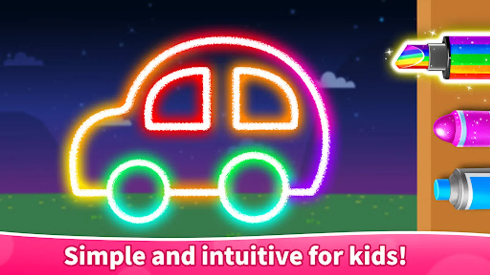 Our kids doodle game is very easy to play! To paint, all kids need is just a few taps on the screen! By following the lines, boys and girls of all ages can have fun with glow doodle and coloring!
