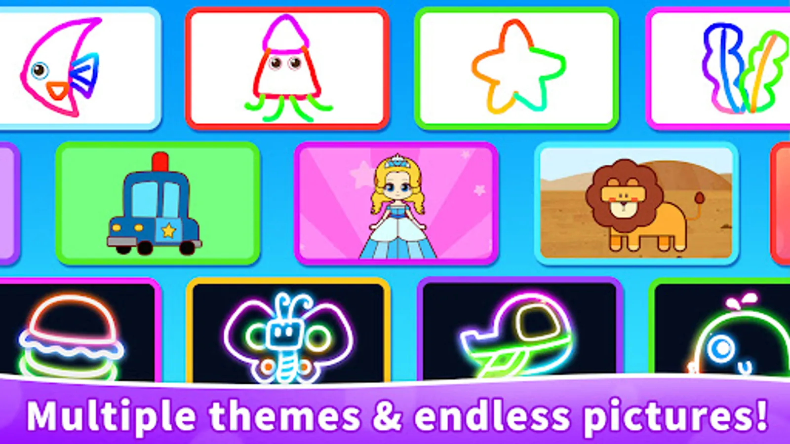 - A total of 7 themes and 160+ coloring pages, including the princess, ice cream, car and other patterns;