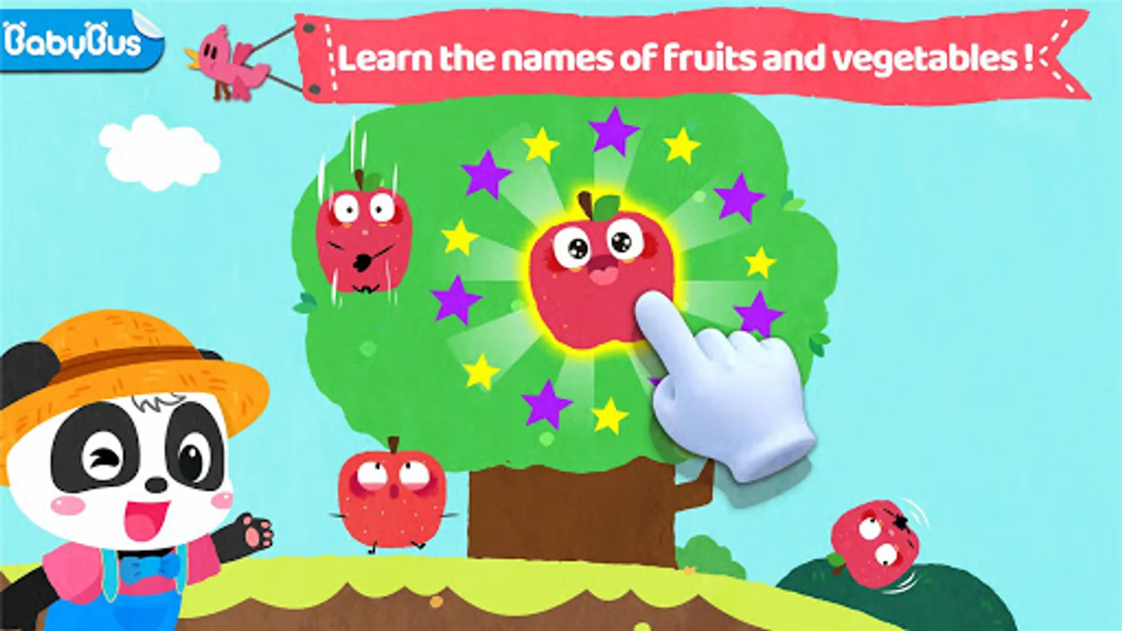 Hi kids, do you know how fruits and vegetables grow? Come to Baby Panda's Fruit Farm, play games with fruits and vegetables and learn about them!