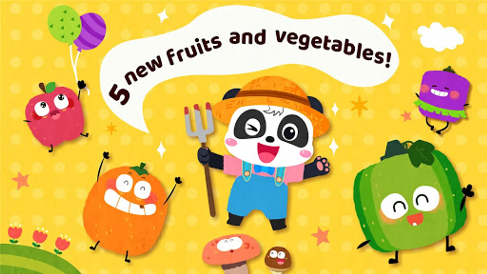 5 all-new fruits and vegetables--apple, grape, mushroom, orange, and pumpkin—are now part of Baby Panda's Fruit Farm! Also new to Baby Panda's Fruit Farm are hide-and-seek, rainbow slide, roller coaster, and many other fun games!