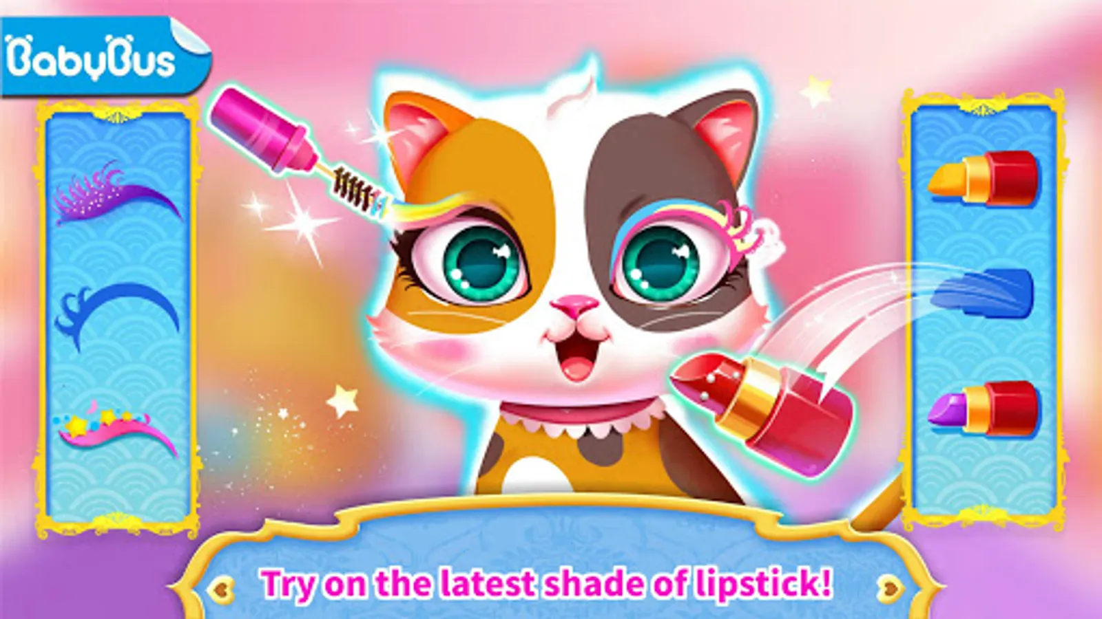 The kitty also wants to have a beautiful party look! Help the kitty put on the cosmetic contact lenses and apply the "Christmas red" lipstick. The kitty will be extremely happy!