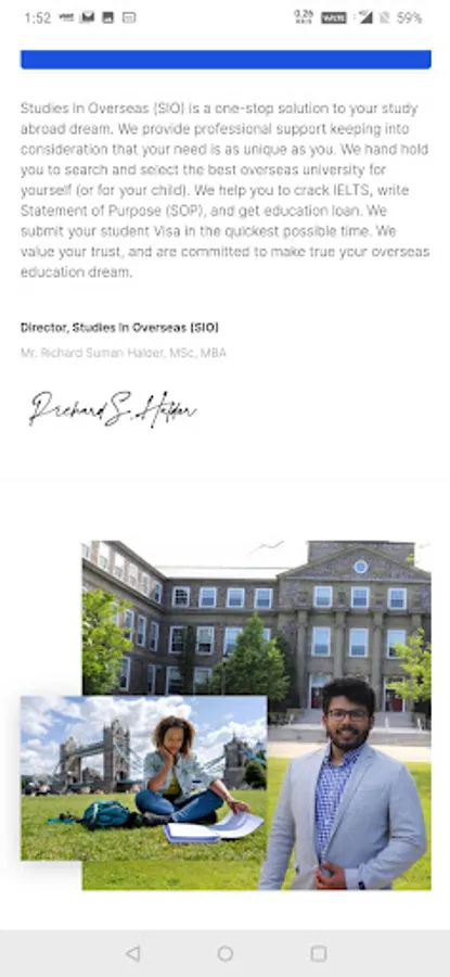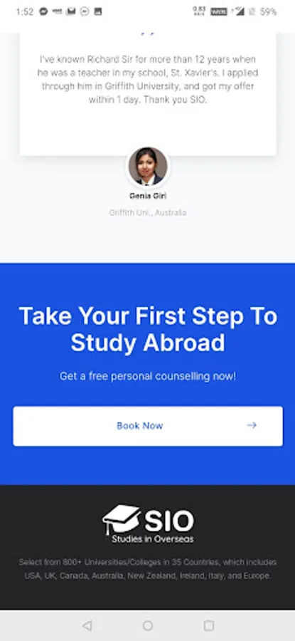Studies In Overseas (SIO) is your trustworthy hi-tech, high-touch, study abroad education consultancy. We provide professional support in choosing your overseas education destination; guiding you in applying to universities, to providing you loan assistance, to processing your Visa—all for free. We value your trust and want your overseas education dream to come true.