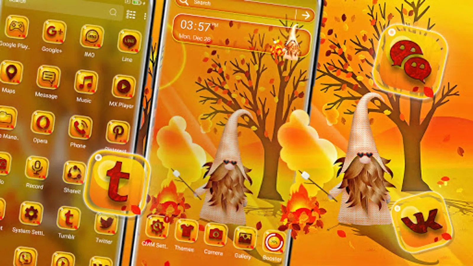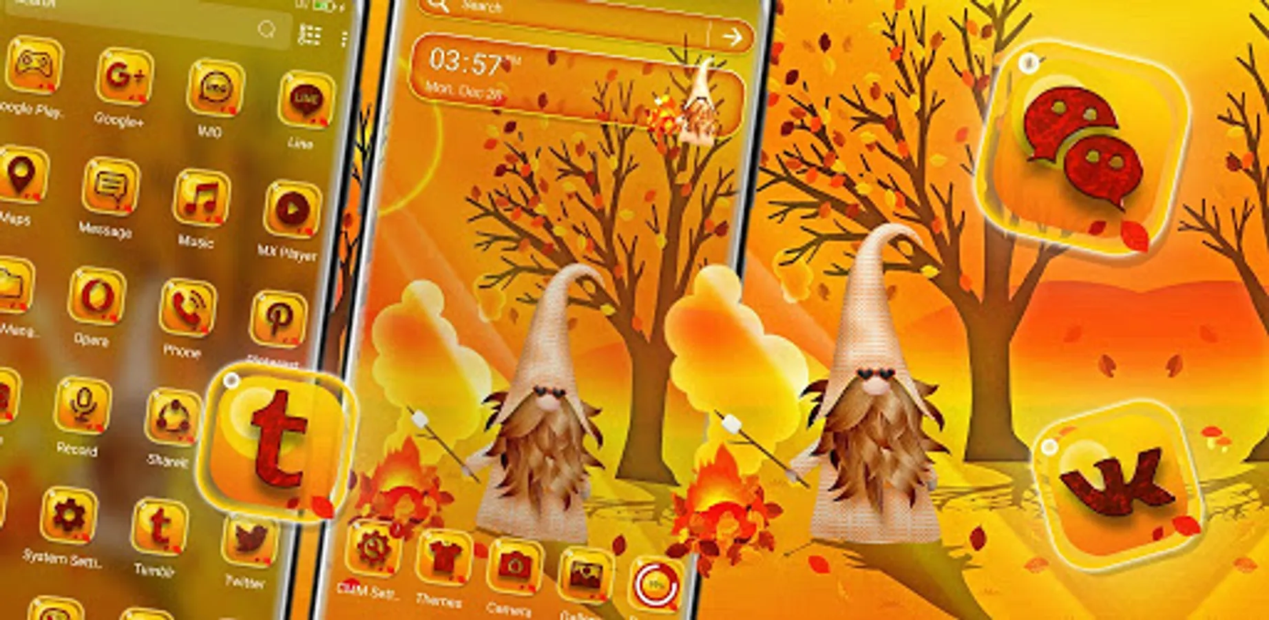 Gnome Autumn Launcher theme also contains personalized lock screen elements which let you feel amazed every time you wake your phone. Also it has listed variety of our free themes to choose and apply to change look of your phone everyday. Gnome Autumn Theme will make your device succinct design and Yellow Red icon pack with customized app icon pack, organized folders, sliding 3D screen effects, HD wallpapers and widgets.You will love this Yellow Red icon pack Gnome Autumn Theme to customize your android home screen.