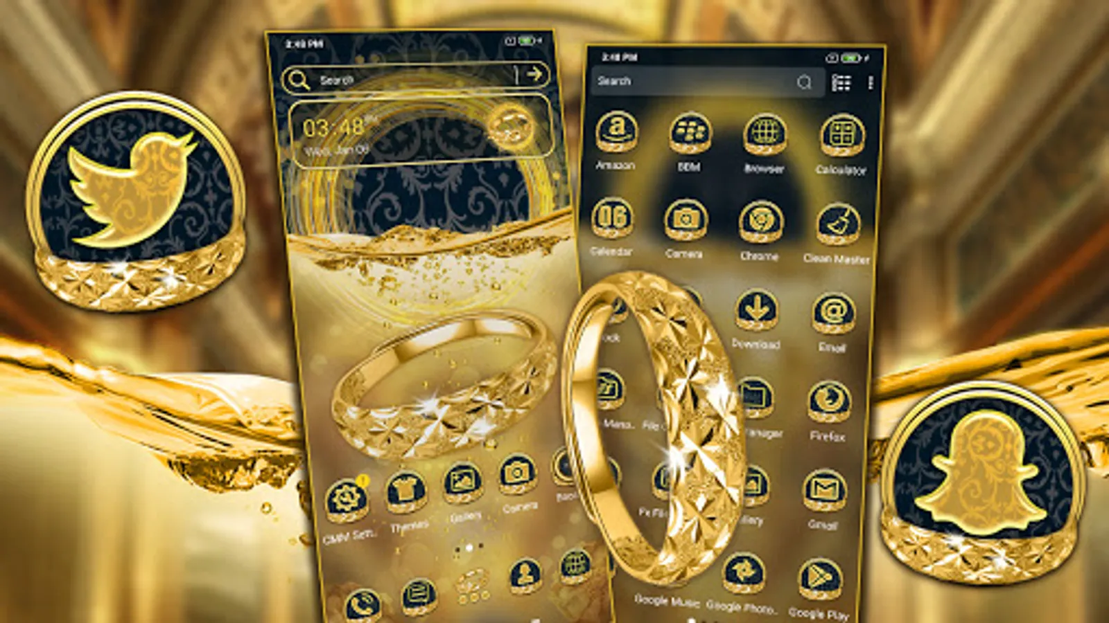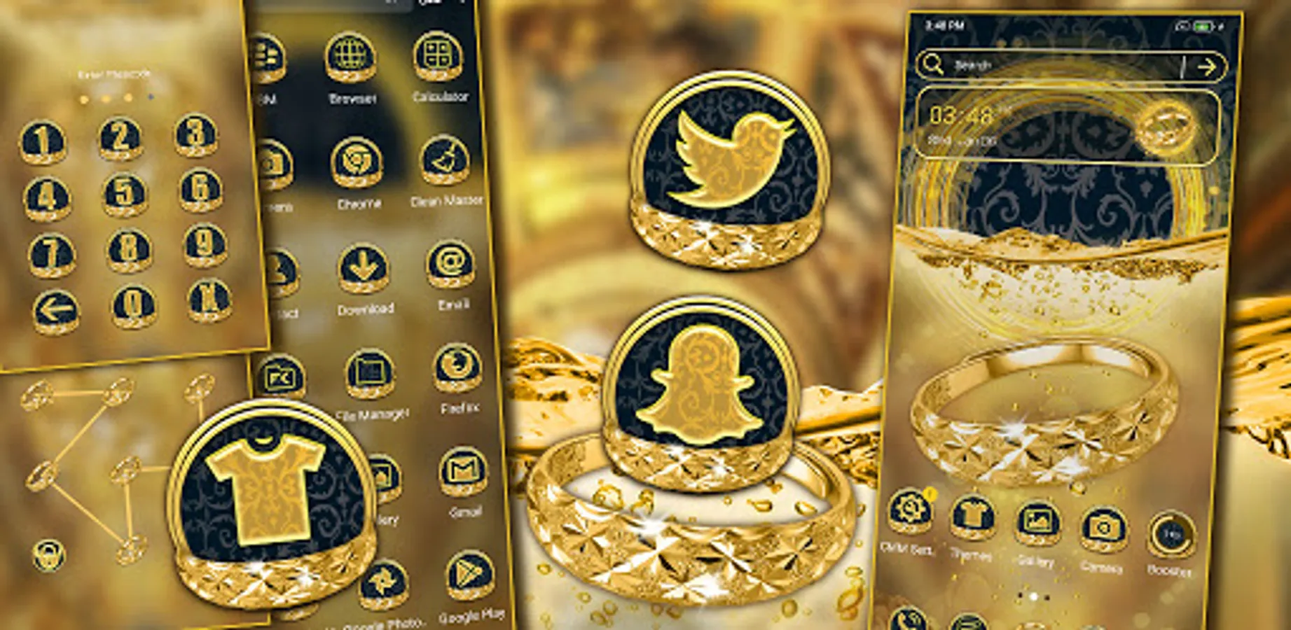 Golden Ring Launcher theme also contains personalized lock screen elements which let you feel amazed every time you wake your phone. Also it has listed variety of our free themes to choose and apply to change look of your phone everyday. This Theme will make your device succinct design and Ring icon pack with customized app icon pack, organized folders, sliding 3D screen effects, HD wallpapers and widgets.You will love this Ring icon pack Golden Luxury Theme to customize your android home screen.