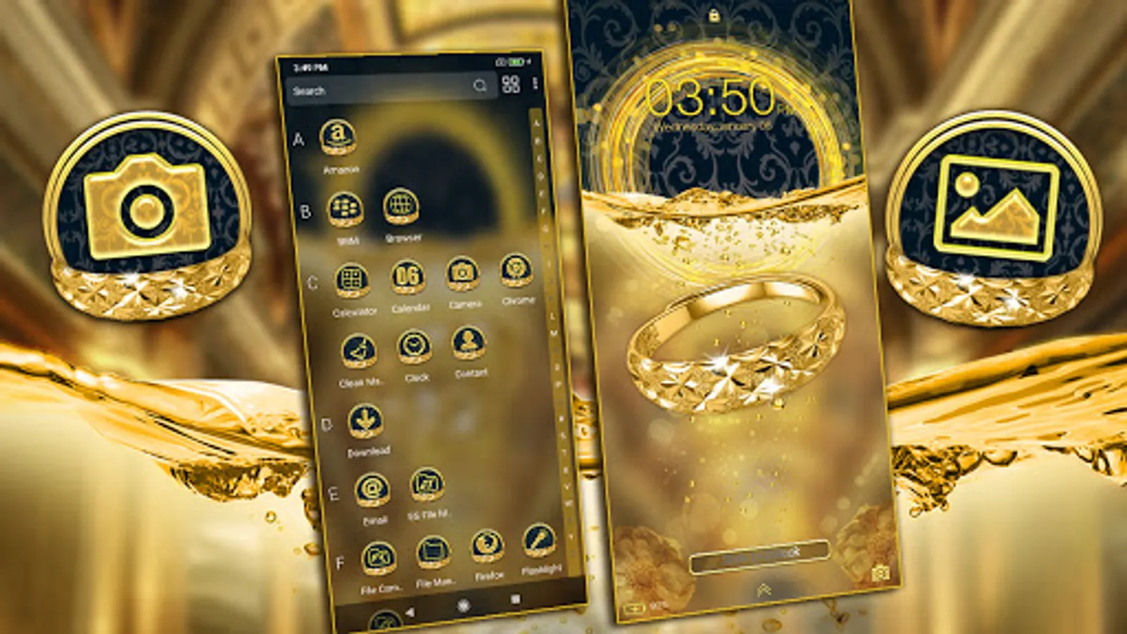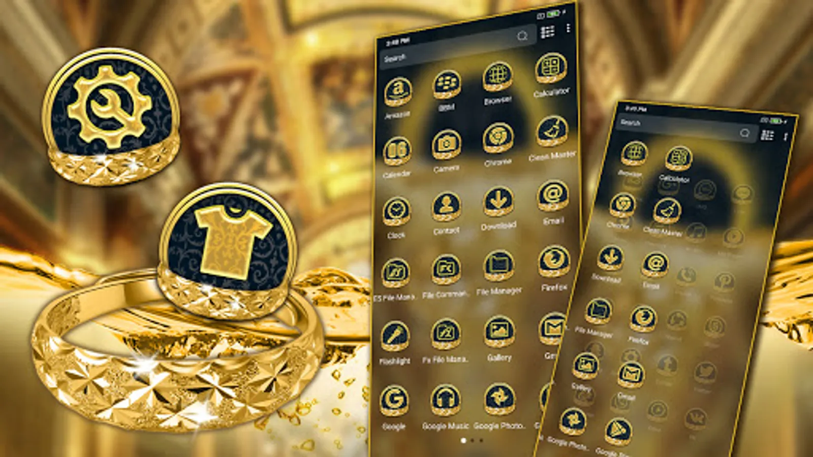 - Golden Ring Theme with succinct black Ring icon pack HD live wallpaper.