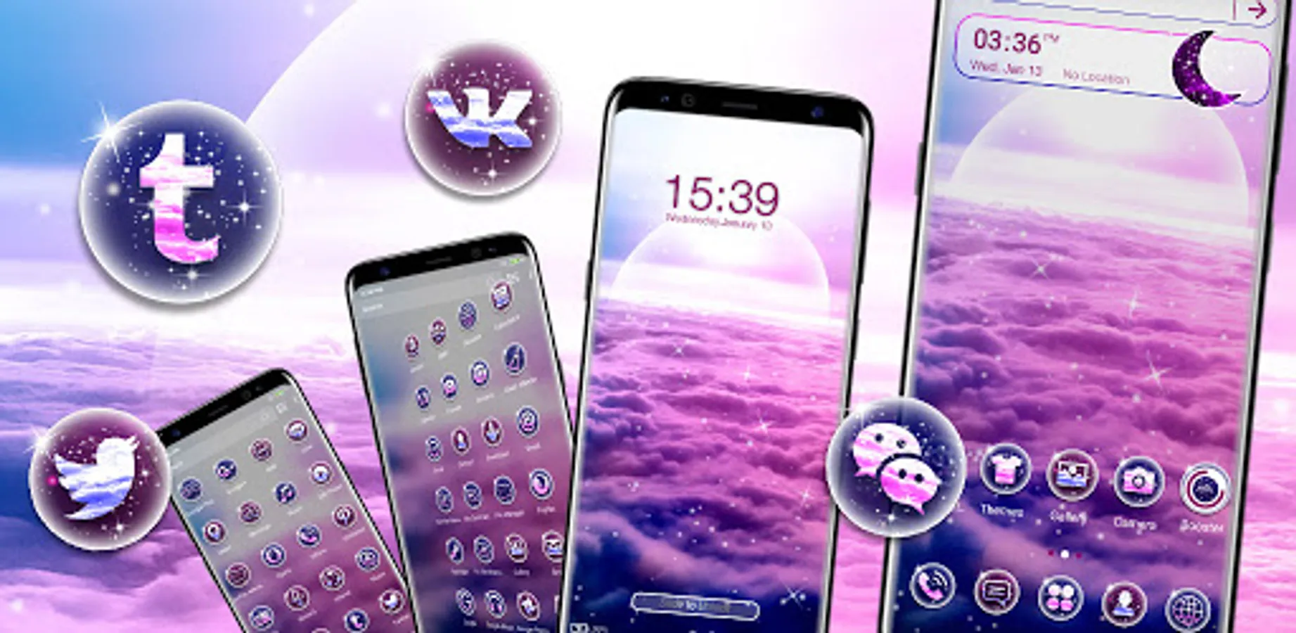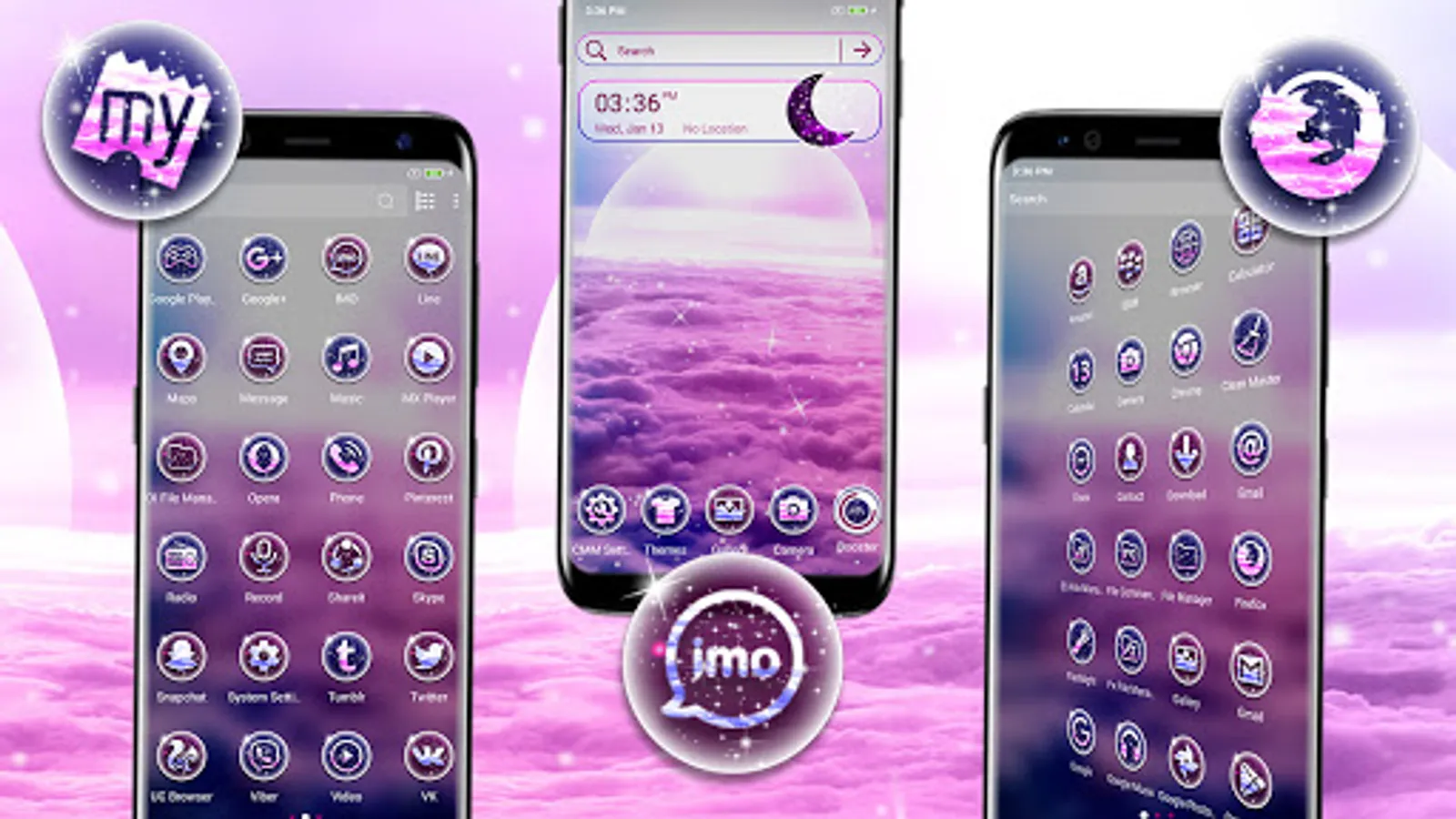 Do you want to change the look of phone without spending a penny? Yes It's possible; Right! No need to buy a new phone to change look of your phone. Just install this Pink Clouds Sky Theme, It will personalize your smartphone home screen in a way that suits better. This theme consists of variety of icon packs & HD Pink Clouds Wallpaper, also it will be applied automatically in a seconds and don't need to customize manually. This Theme's icon set is crafted by world's top designers.