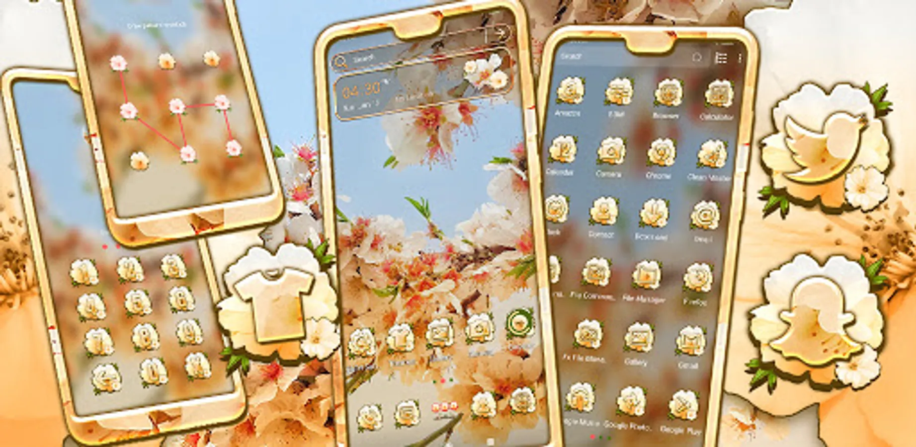 Spring Blossoms Launcher theme also contains personalized lock screen elements which let you feel amazed everytime you wake your phone. Also it has listed variety of our free themes to choose and apply to change look of your phone everyday. This Theme will make your device succinct design and Flower icon pack with customized app icon pack, organized folders, sliding 3D screen effects, HD wallpapers and widgets.You will love this Flower icon pack Spring Blossoms Theme to customize your android home screen.