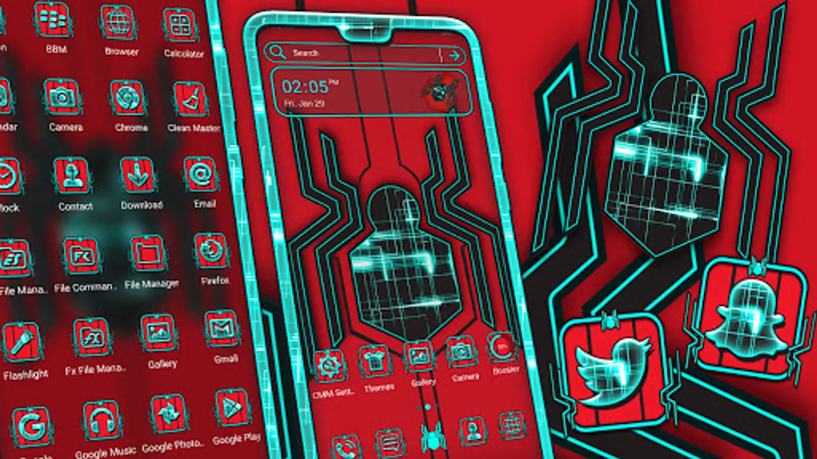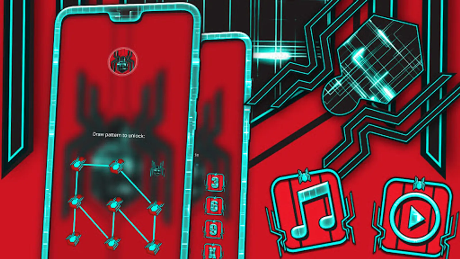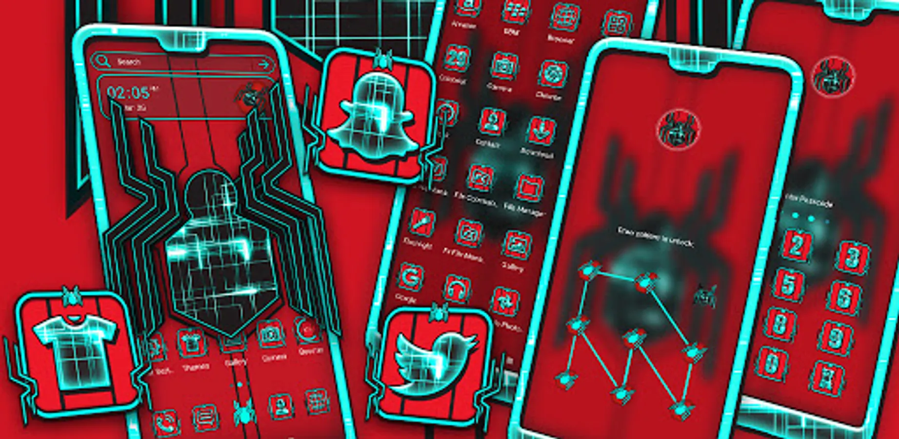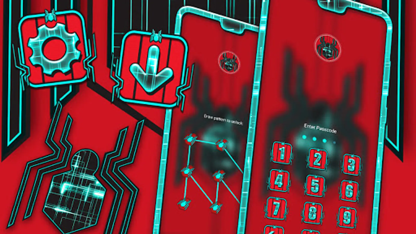 - Tech Spider Theme supports personalized lock screen that suits with Spider Wallpaper