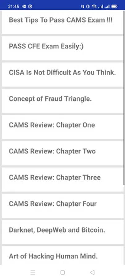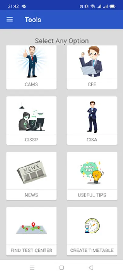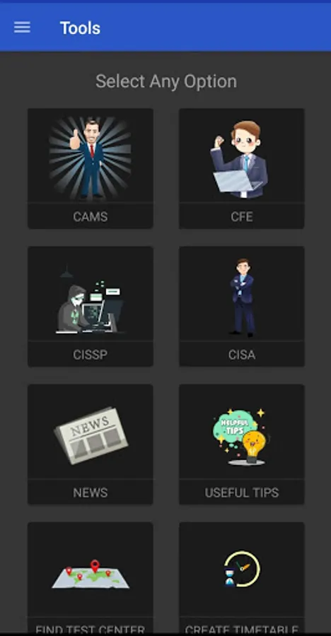 This app is for all aspiring professionals who want to advance their career by undertaking different certification exam like CAMS, CISA, CISSP, CFE . Although this looks like a simple app, but has a lot of punch as it includes various features like practice questions for different certification exams as well as other functionalities where you can read about latest financial and cyber crime news, create your own flexible study time table, get valuable important tips and many more....