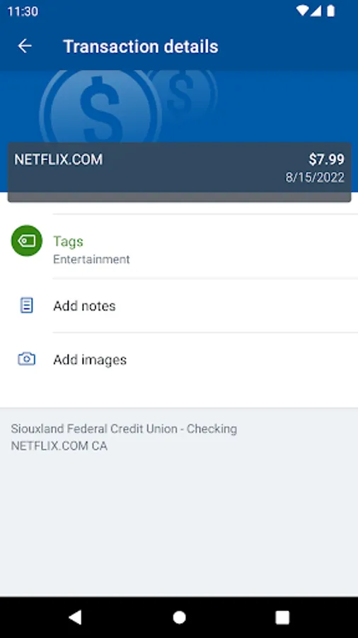 -Keep your transactions organized by allowing you to add tags, notes and photos of receipts and checks.