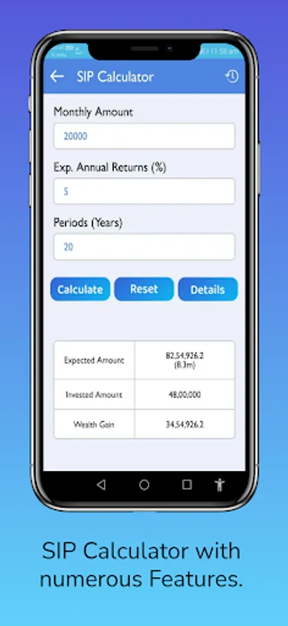 Easy to use SIP calculator app that helps you calculate the expected returns on your mutual funds for SIP (applicable for India).