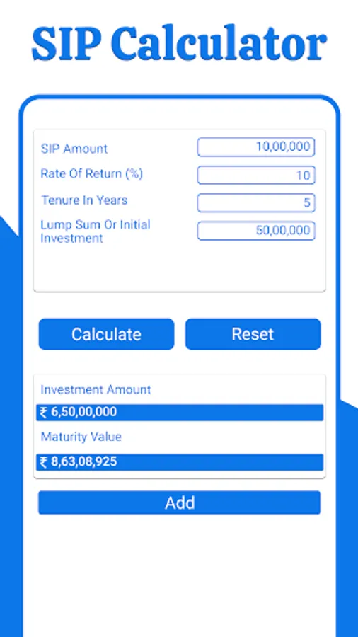 SIP Calculator & SIP Planner is the unique app which has been very much thoughtfully designed and developed for every type of users Homemaker, Student, professionals, Business man, investors, Bankers, CA’s , Financial Planners etc..