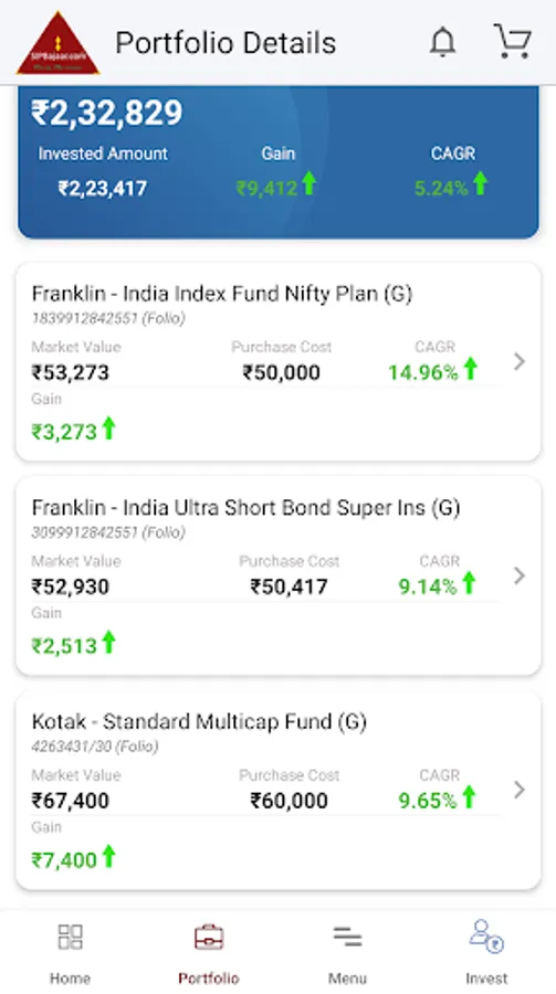 ■ Invest in both growth and dividend plans of mutual funds at the click of a button.