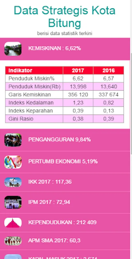 Features of strategic data, displaying the latest statistical data, such as inflation, unemployment, poverty, economic growth, human development index, the value of exports and imports, tourism