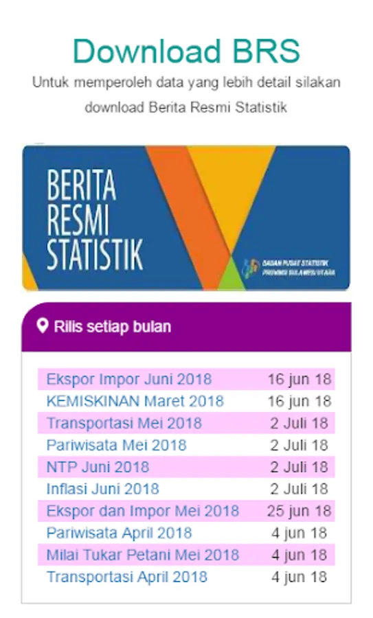 Features a list of websites, displaying the BPS website address provincial and regencies / cities throughout North Sulawesi